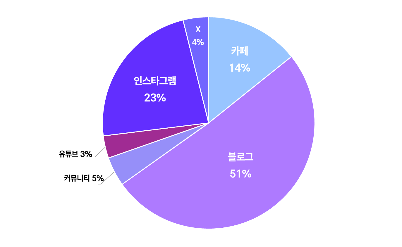 유튜브와 X(구 트위터)도 비교적 높은 버즈량을 기록한 반면, 텍스트 중심의 커뮤니티나 카페에서는 상대적으로 언급이 적은 흐름이 나타난 것을 파악할 수 있었어요.